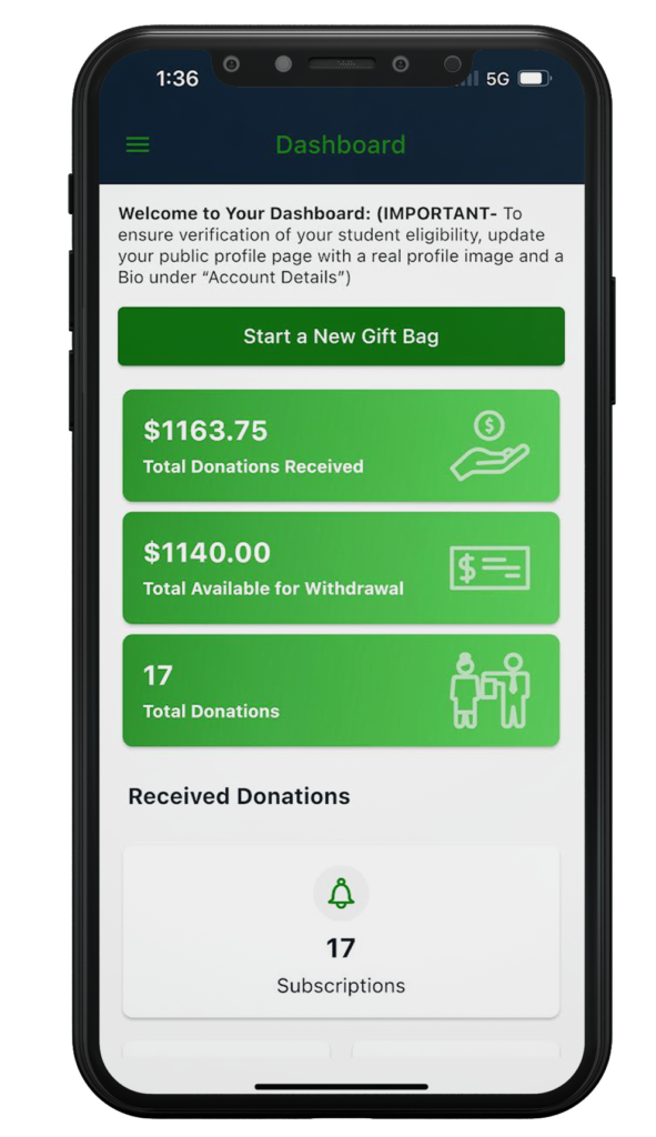 Build long term relationships with Donors and Followers who provide weekly or monthly contributions to support your college expenses.